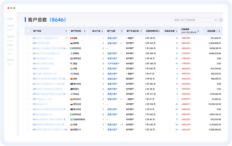 全面的客户画像,可视化呈现客户分布等;支持多种筛选条件及删除等操作,精细化管理;智能监测客户动态